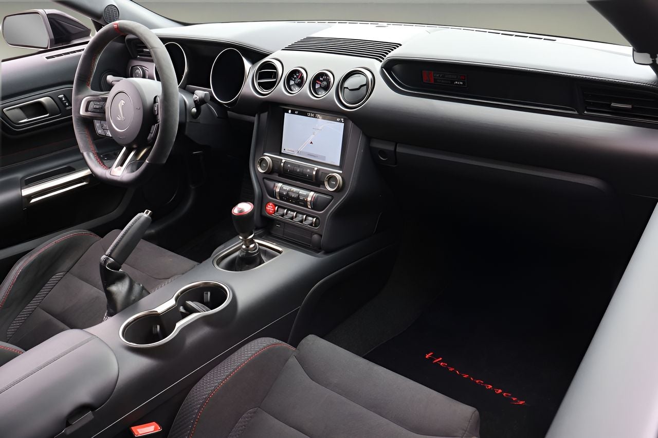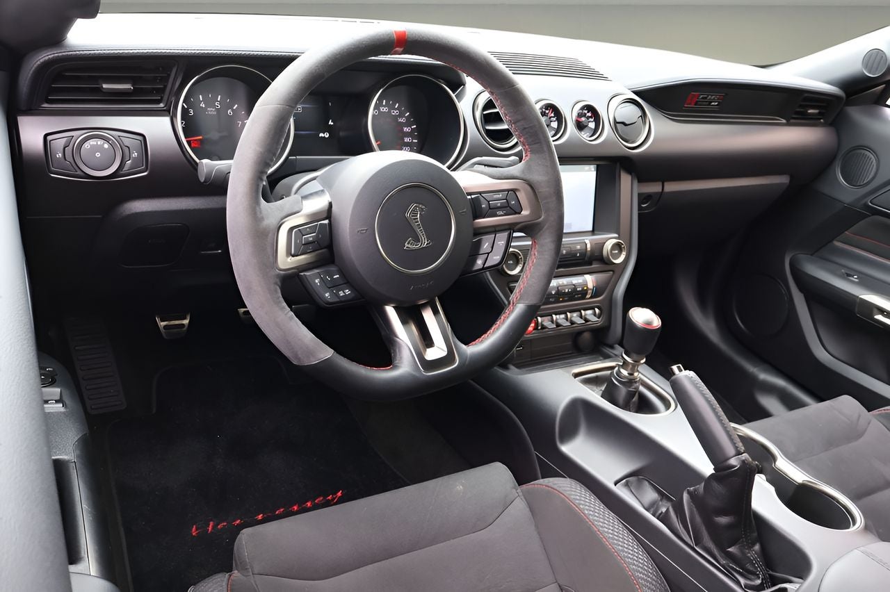 Under the hood, the 5.2L Ti-VCT V8 engine delivers an exhilarating 526 horsepower, channeled through a precise Tremec 6-speed manual transmission and a rear-wheel-drive system that provides an unparalleled driving experience. With a deep, throaty exhaust note and lightning-quick responses, this Mustang Shelby GT350R is a true performance icon.