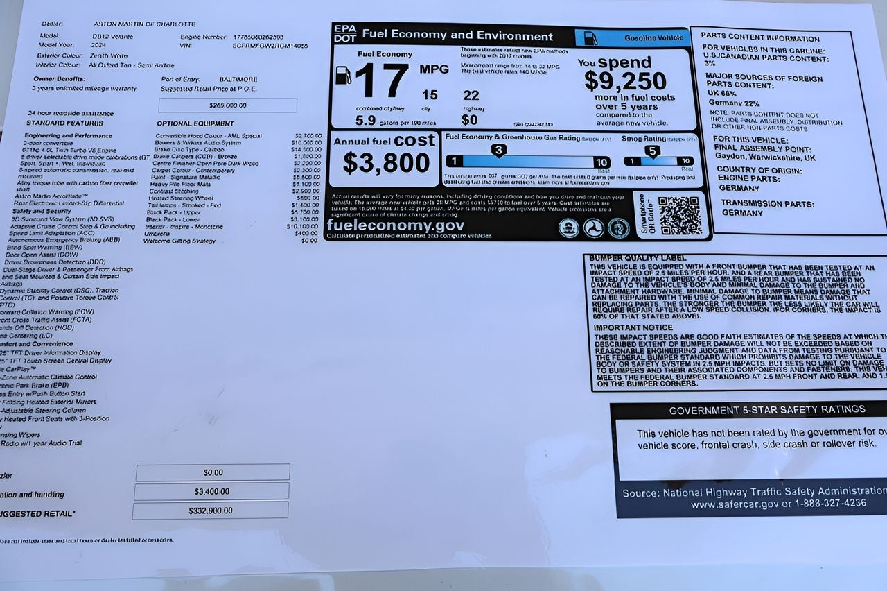 - Fuel Economy Est-Combined (MPG): 17