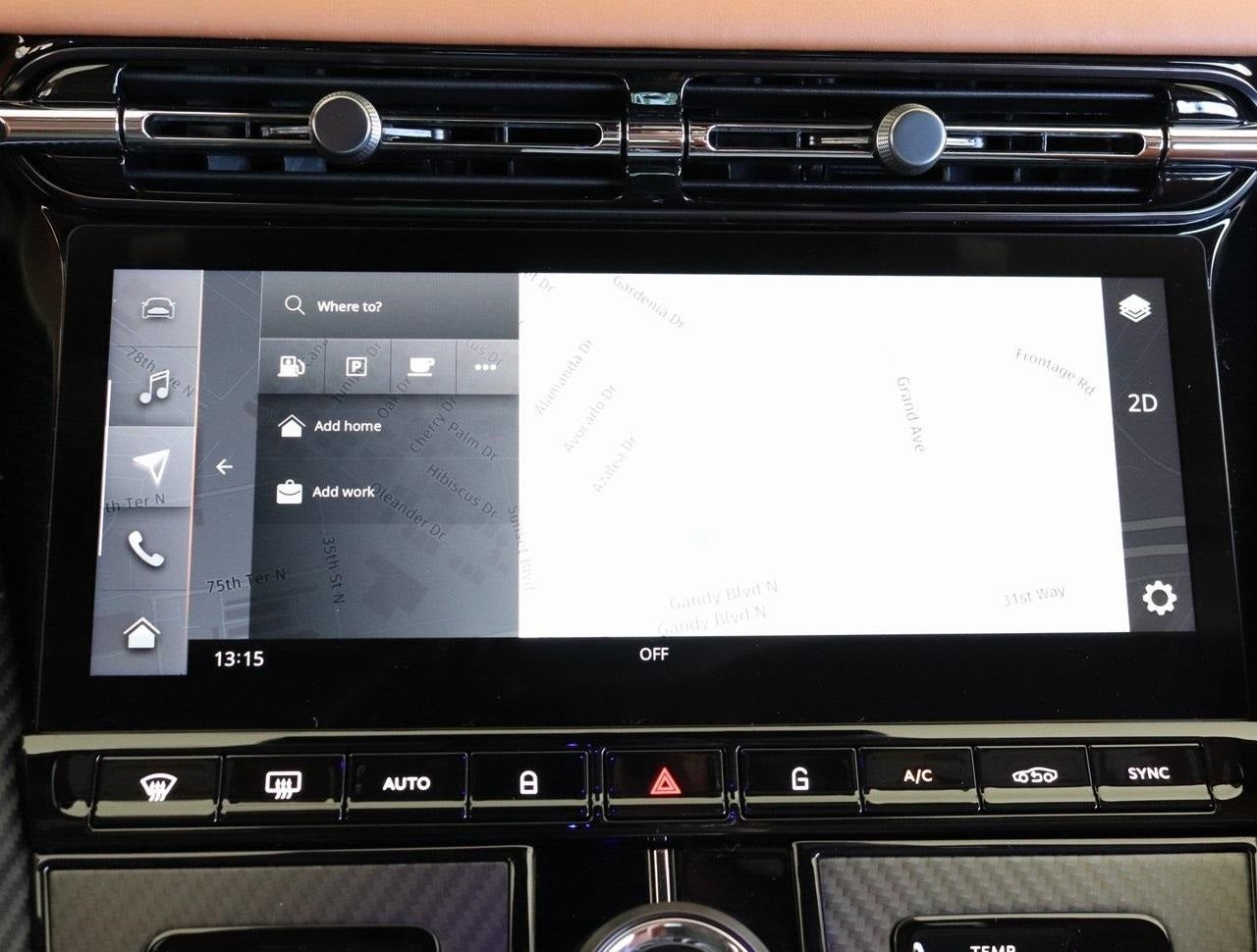 - Radio: 390-Watt Aston Martin Audio System -inc: 11 speakers, 10.25" TFT touch screen central display, Apple CarPlay, AM/FM/HD/DAB radio, wireless phone charging, Bluetooth® mobile phone connectivity w/audio streaming, natural voice control, satellite navigation system, SiriusXM satellite radio, 2 USB ports and 12v charging socket